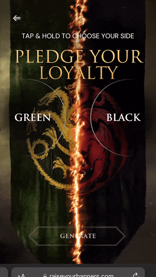 To help HBO build buzz ahead of the season 2 House of the Dragon premiere, we put fans at the center of the story. Raise Your Banners is an AI-powered character poster generator that invited users to step into the epic conflict, choose their house, and claim their main character moment—transforming fandom into personalized, shareable storytelling.